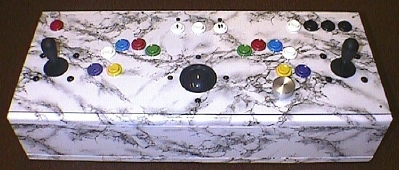 Now that the hard part was done I had to figure out what layout I wanted for the joystick. I looked at many, many layouts and I finally decided to go with a layout that fit my hands while I was standing and sitting them on a flat surface. I wanted two joysticks and 6 buttons per player. I used a layout that made it so player one would move the joystick with their left hand and fire with their right. I did this because that is what I like when I play games, but you might prefer something different. Player two uses their right hand for the joystick. This also helps space out the players too so it's not too crowded. I also wanted a trackball so I decided to put that in the middle and have the escape and other function buttons on the top of the joystick.A quick tip for layouts, use a piece of cardboard to test layouts and find one you like, then trace the button positions onto the board and cut them out. I went through about three different layouts before I decided on the one I'm using.