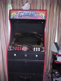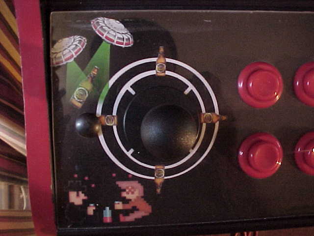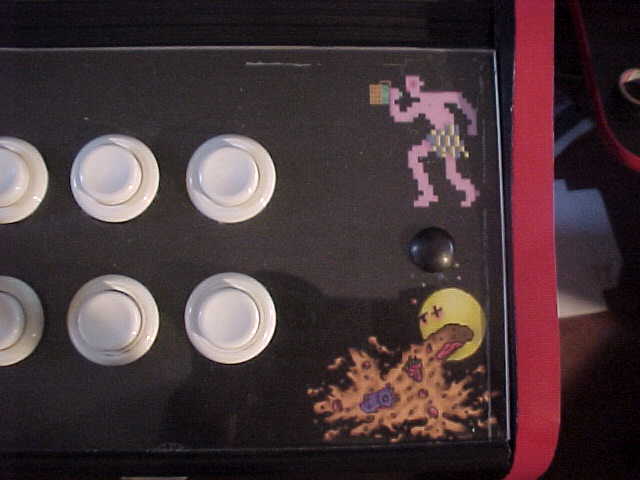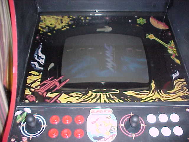 A friend of Gerald's helped him with the artwork for the cabinet.  The original cabinet was in fairly bad shape, so Gerald redid the artwork with some custom graphics...